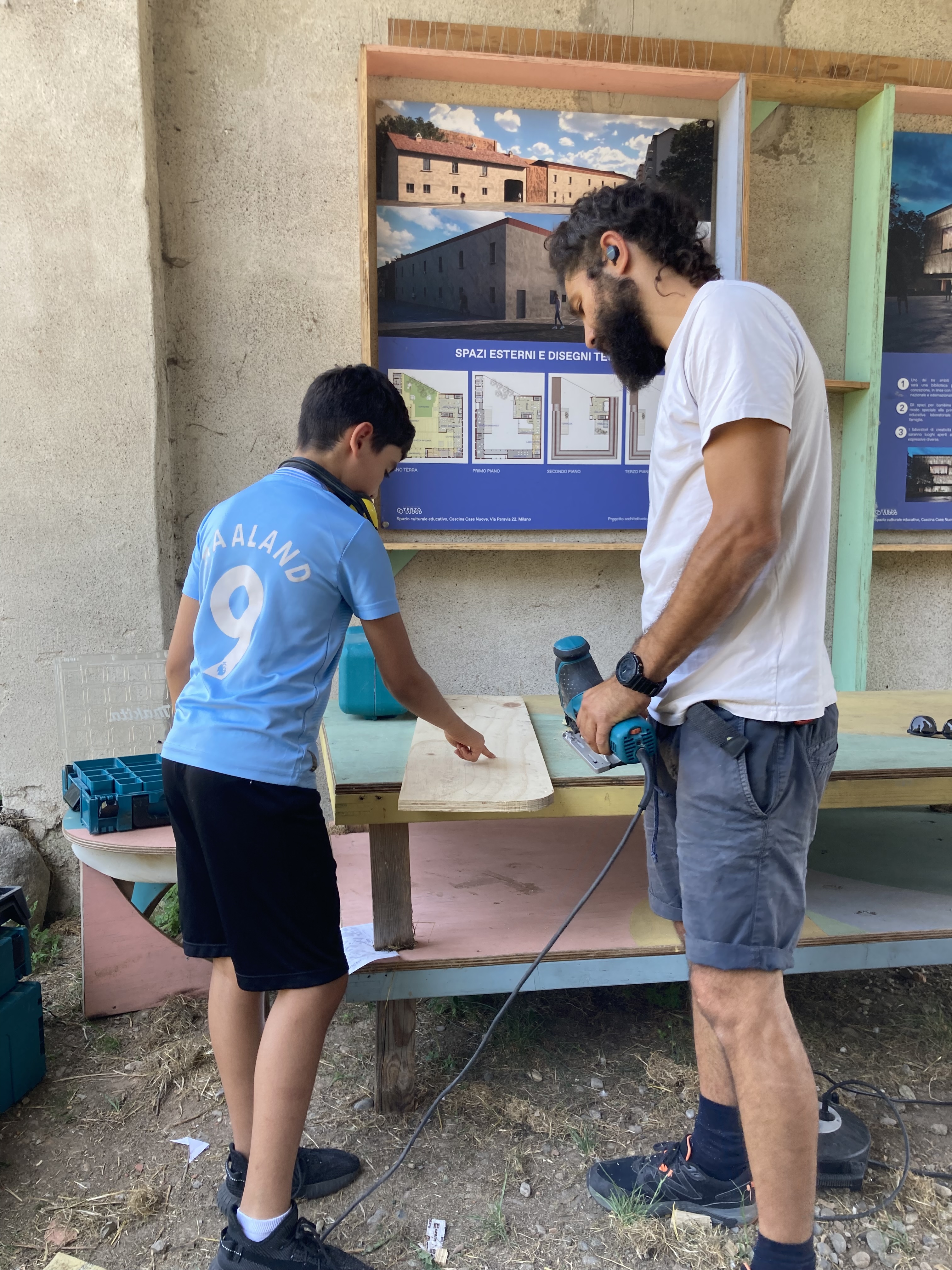 A giugno 2025 nello spazio verde di Case Nuove sono stati ospitati i laboratori di auto-costruzione organizzati da Gallab, l’officina creativa che da anni trasforma materiali, spazi e relazioni nel quartiere di San Siro.